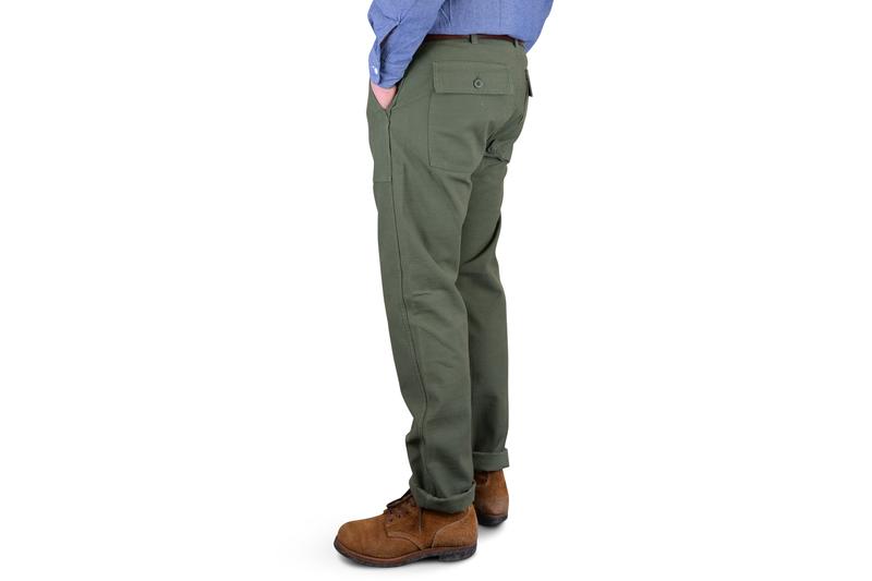 - Fatigue Pant in 8.5 oz cotton sateen (Style is inspired by the Iconic OG-107 pant of the US Army).