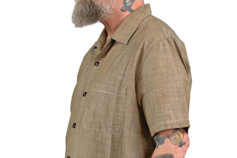 - Klassisches „Bowling“ Shirt in grünem Chambray