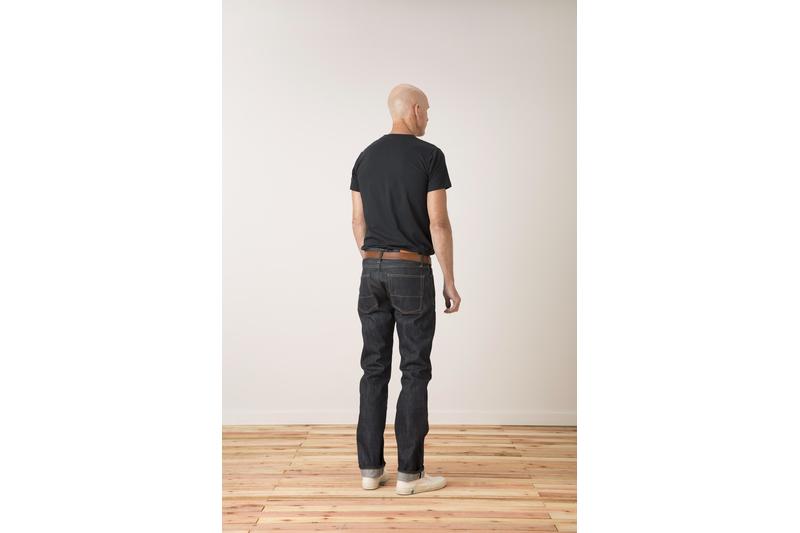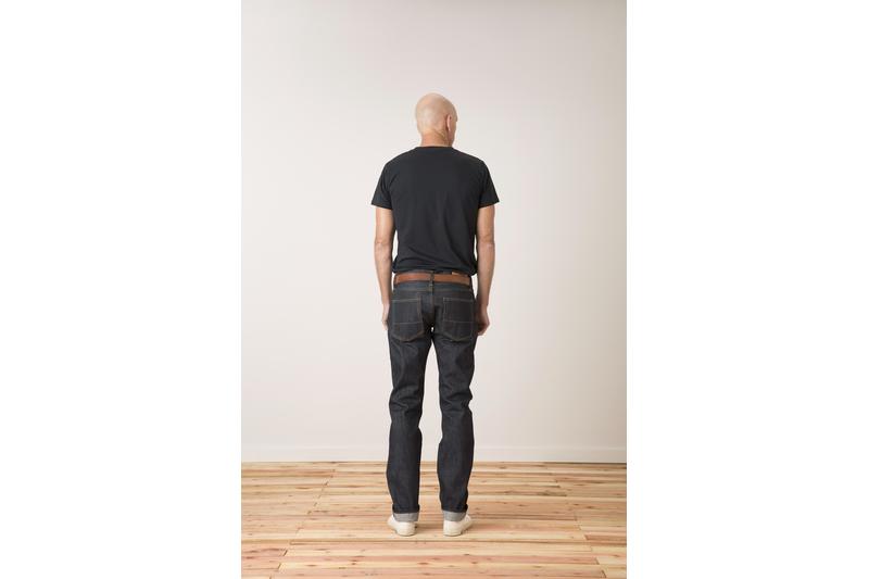- Raw Denim Jeans. Slim tapered fit. Mid rise. Five pocket.